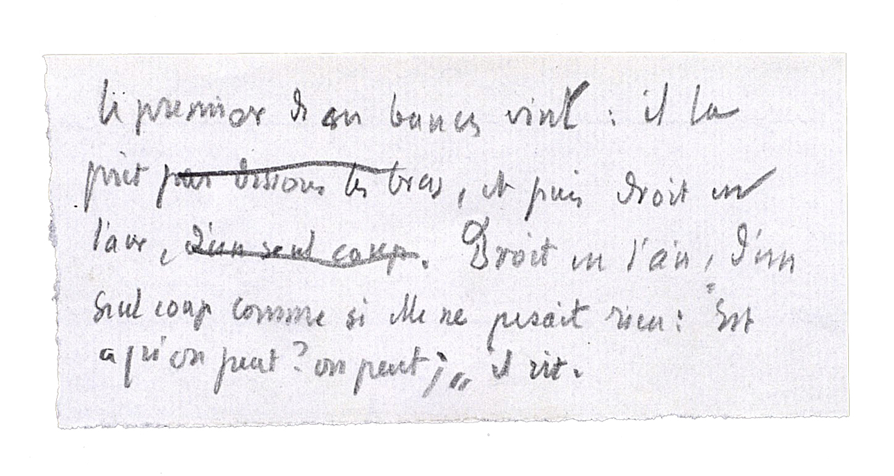 Et ça partit tout à coup[.] Un élan lui était venu[;] et avant de commencer à grimper: